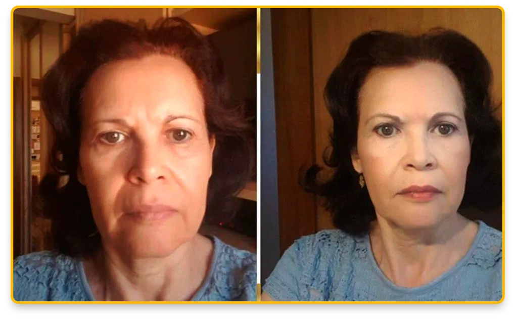 “Com essas fotos é impossível não dizer que minha vida mudou e muito depois do Lift Gold. Finalmente achei o produto que procurava, me sinto mais jovem, feliz e realizada com o resultado. Rugas na minha vida nunca mais!!!”